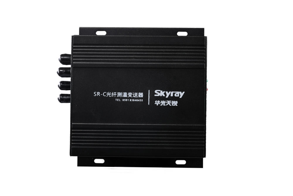 光纖探頭由ST接頭、光纖光纜、末端感溫端三部分組成。ST接頭是與光電模塊的連接部分;光纖光纜為傳光部分,內部為石英光纖,石英光纖外部有涂覆層和包層,最外部為特氟龍保護套;末端感溫端含有感溫稀土材料,用于產生含有溫度信息的光信號;光纖整體耐200℃高溫,外表直徑為3mm。長期彎曲半徑13.2cm。短期彎曲半徑4.4cm。光纖引出線對地距離為0.4m的情況下,耐受工頻電壓100KV,持續(xù)時間5min。